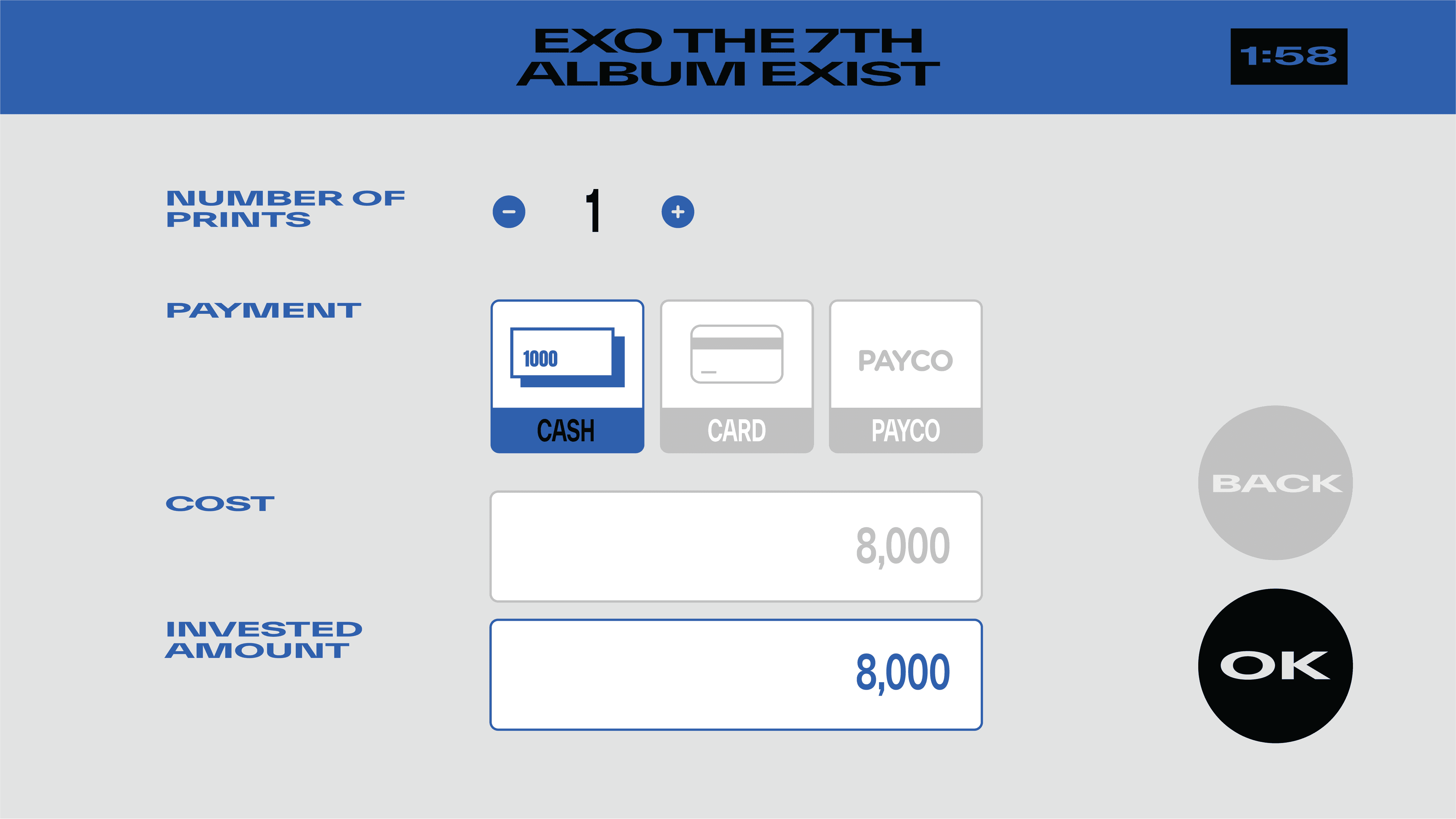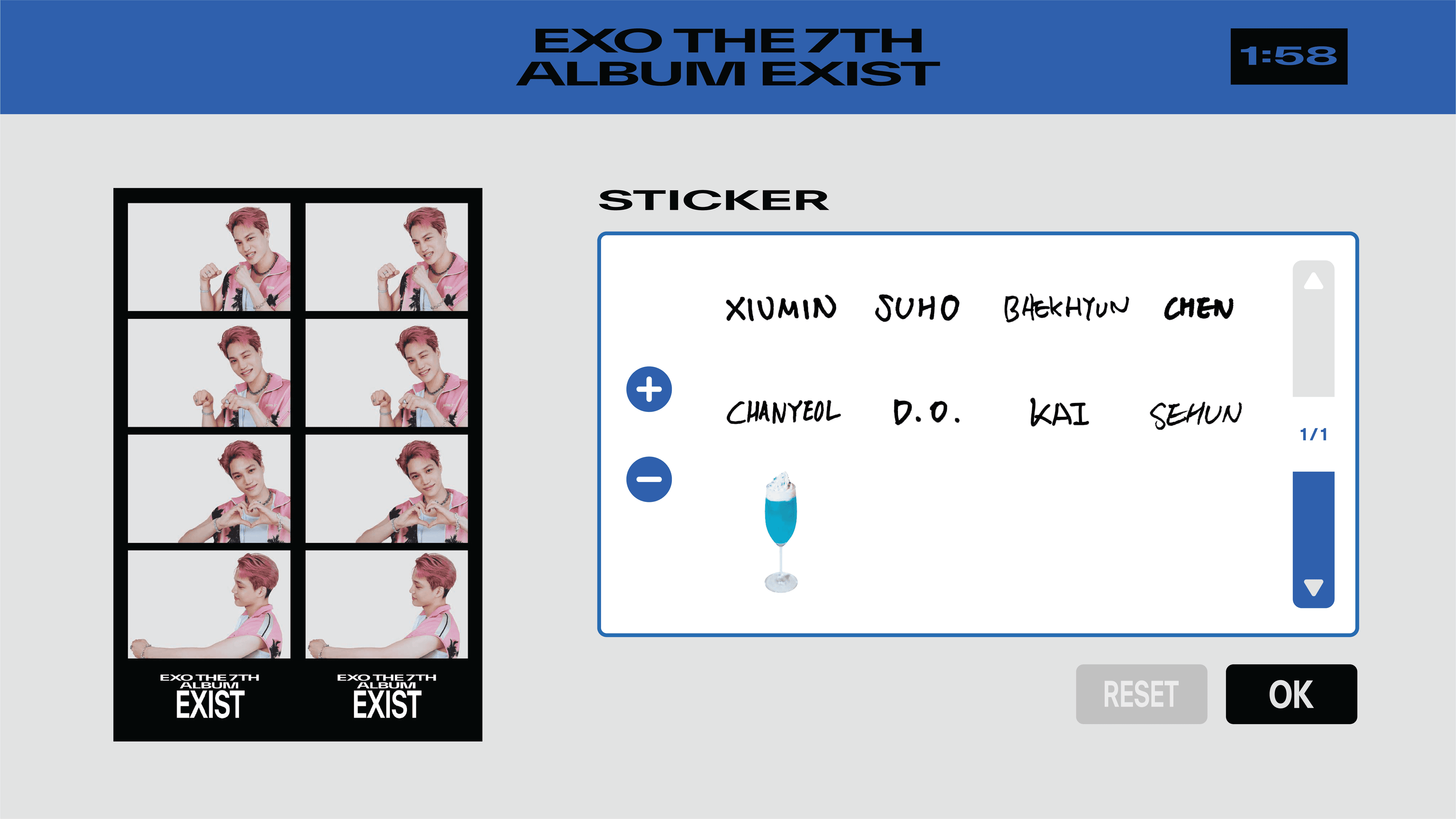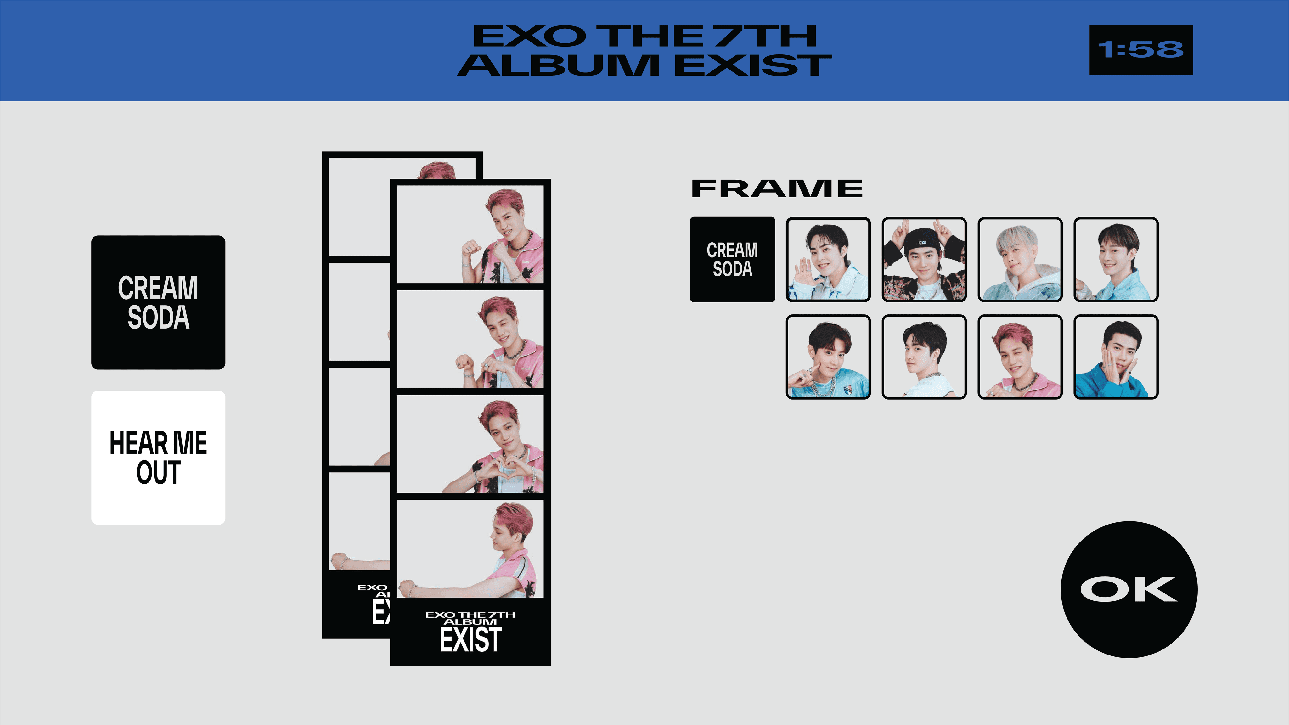 성수동에 위치한 디뮤지엄과 언더스탠드에비뉴에서 진행된 아이돌 EXO(엑소)의 팝업 스토어 'EXOcial Club - Cream Soda' 포토부스 설치 사례입니다. 전용 키오스크 개발 및 스티커 기능을 추가한 커스텀 포토 부스, 아티스트 프레임을 추가하여 운영하였습니다.