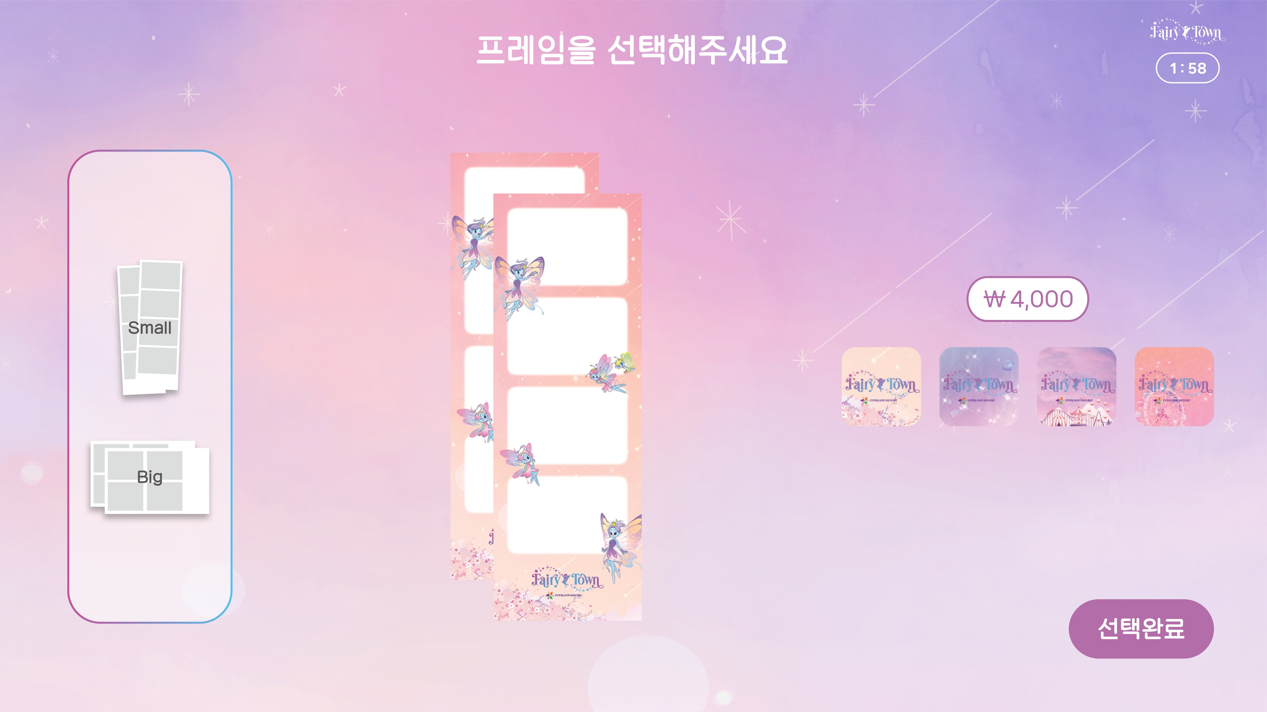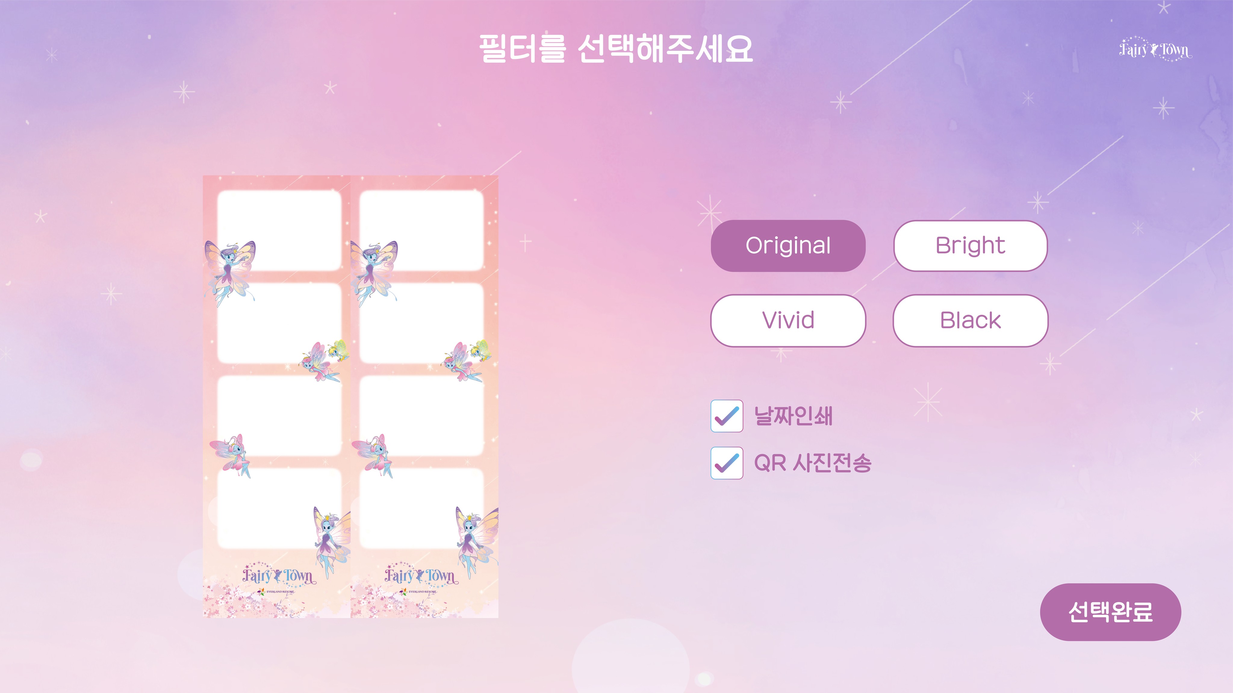 에버랜드 Fairy Town (페어리 타운) 포토부스 설치 사례입니다. 전용 키오스크 개발 및 프레임, 특히 사진 촬영 후 영상을 다운 받을 때 프레임이 움직이는 모션 프레임을 개발하여 운영하였습니다.
